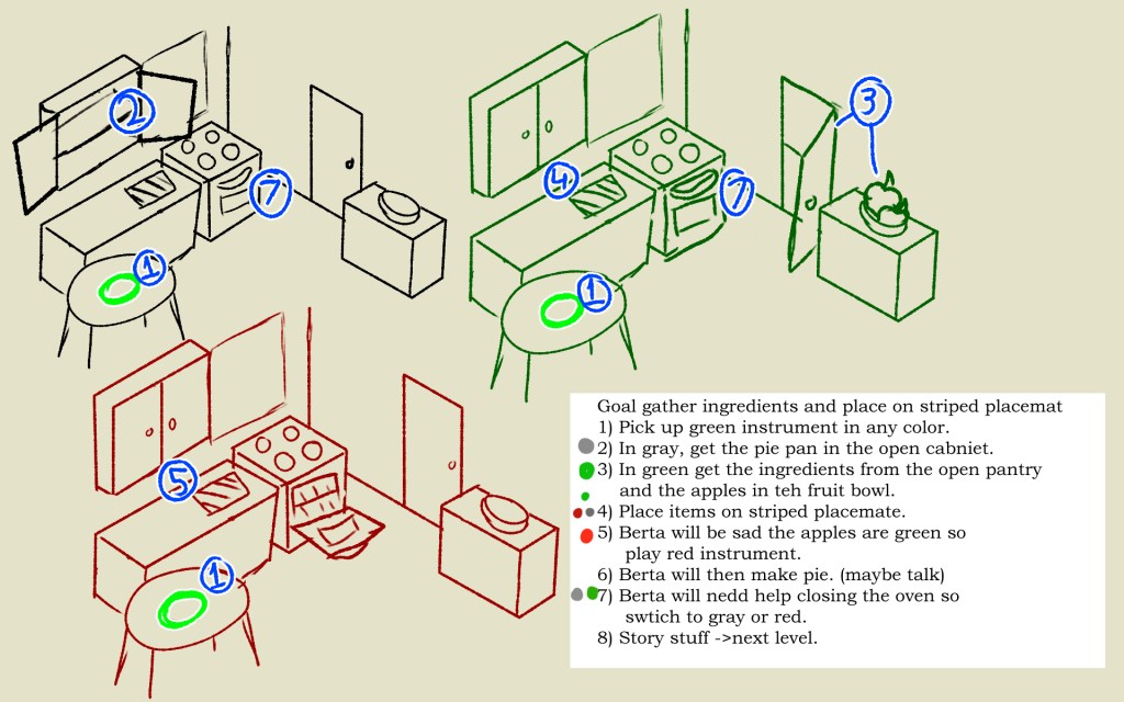 The main mechanic in Chroma Spectra is an ocarina that can change the color of the level, while revealing/hiding certain objects. It can be played in browser on Itch.io or downloaded as an executible for Windows, Mac, and Linux.