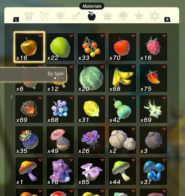 During gameplay, players can hold the up arrow on the D-pad to bring up a single row bar displaying most of their inventory. This “Quick Access Inventory” is primarily used to throw or fuse items during combat, however most fans view it as frustrating. I believe this frustration primarily comes from how they are sorted and displayed.